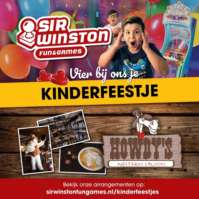 Vier jouw kinderfeestje bij Howdy’s Pannenkoek Saloon in Nootdorp voor een onvergetelijke ervaring. Ons restaurant is compleet in westernthema ingericht en zelfs onze cowgirls en cowboys zijn op de gelegenheid gekleed. Je waant je hier echt even in het Wilde Westen. De kids kunnen gebruik maken van Howdy’s kidsplace.